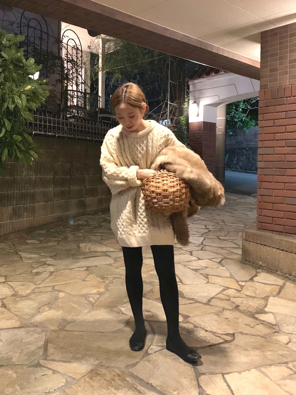 いつも着ているニットをワンピースで🐻 タイツは昔からソフティが好きです〜 靴下みたいであったかくて最高です Instagram🔍@saeka_h