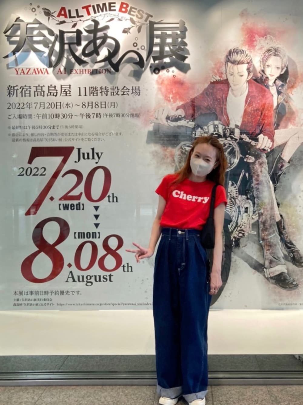 楽しみすぎて眠れないとか言って、実果子っぽく赤Tにワイドジーンズ着てってるのに恥ずかしがってるのがクスクスくる写真です。ダサいピースを添えて✌🏻 Instagram@saeka_h