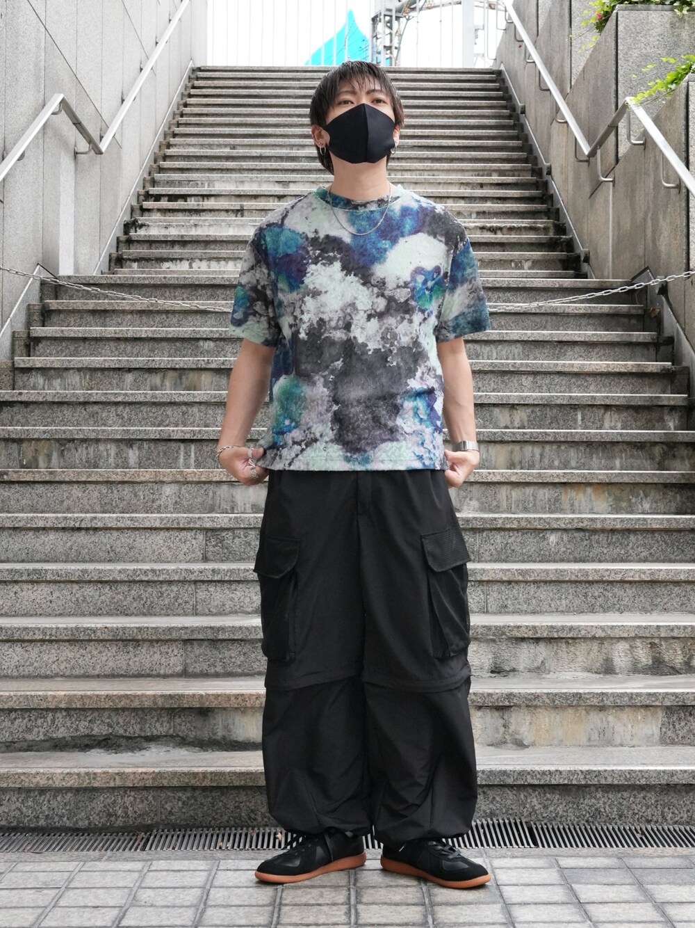1枚でキマるデザインTシャツ パンツはショートパンツにもなる優れもの