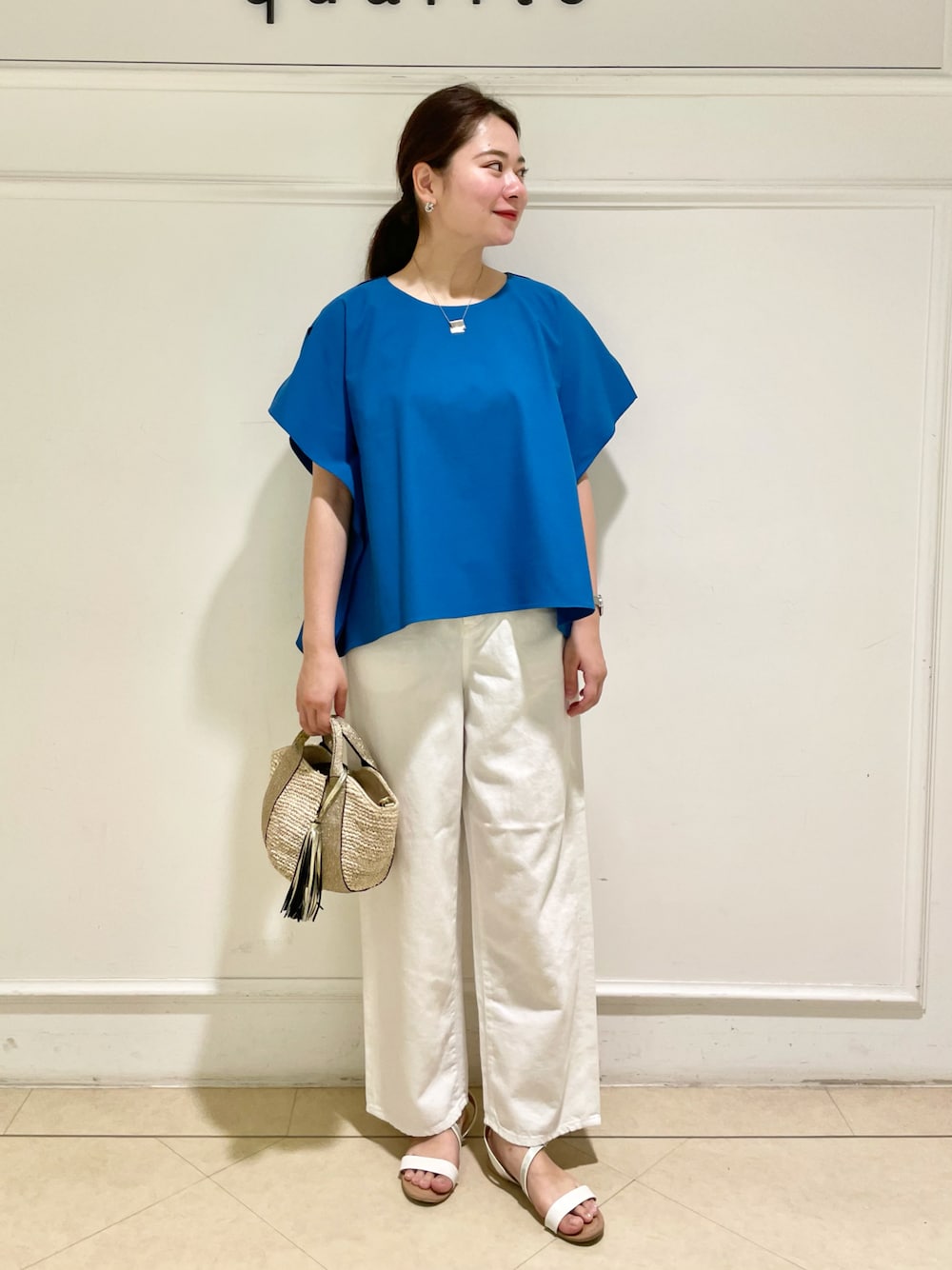 今回は「コットンリネン2WAYブラウス」の新色のブルーをご紹介致します🤍 ぱきっとしたブルーなので白のデニムと合せて夏らしく爽やかにコーディネートしました💙 着心地はストレッチ抜群なのでとっても楽ちんです✨ 秋口は黒のパンツと合せてシックに着るのもおすすめです!!