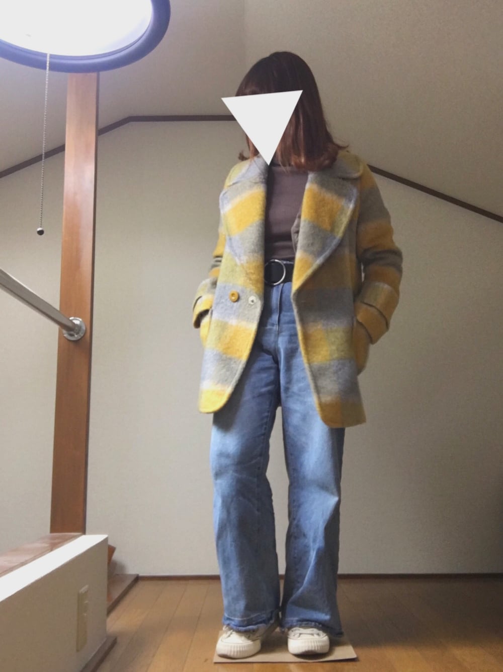 saeのチェスターコート「ニットチェックコート」を使ったコーディネート