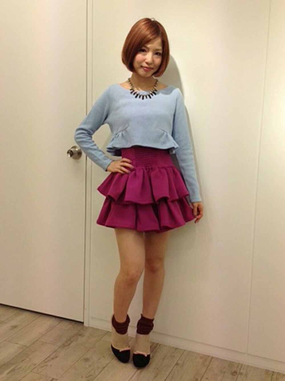 ボルドーカラーのスカートで秋を意識したスタイリング。 足元はKiki&Lalaコラボのブーティです。
