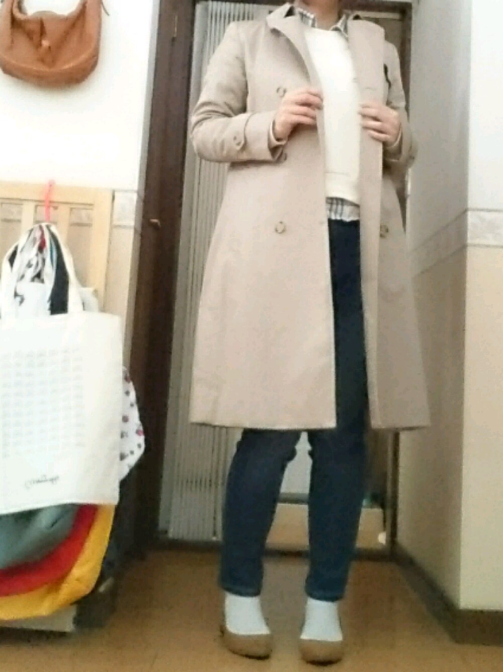 ユニクロイネスコラボのトレンチコートを買いました。 靴は去年の秋に買ったものだけどまだ履き慣れてないので靴下でダメージ軽減…出来てたらいいな。