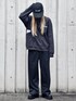 モード×メンズライクコーデ 同じ色味でも濃淡差のあるアイテムを選ぶとメリハリがでておすすめ🖤🐕🦺🐈⬛