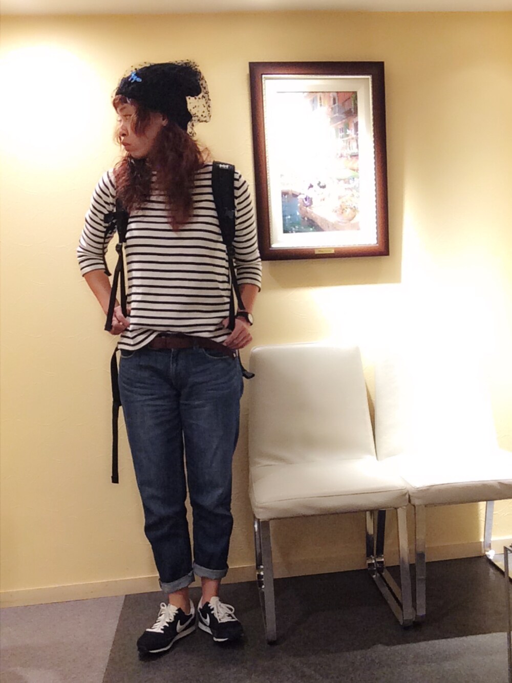 今日はお休みでした。 らくちんコーデ⸌◦̈⃝⸍💕 無印のボーダーTは生地がしっかりしてて良いですね🙆 デニムもゆるゆるですー_(﹚◜ ꒊः`)_ お休みが終わるのははやいなぁ。