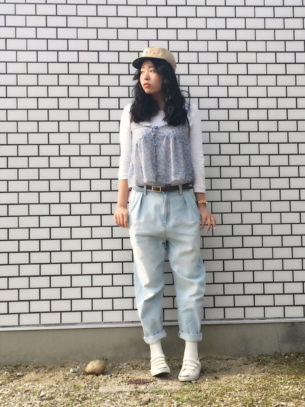 今日は気温20度超えの暖かい日だったのでアウター要らずでした🌞 つい最近春服、夏服まで購入😂 このコーディネートも帽子以外今年買った物ですね👏✨ 物欲😂😂😂 キャミソールずっとほしかったのですが、この古着っぽい感じに一目惚れしました! ゆるゆる最高〜 犬の散歩がてらの花見もおつなものですね〜
