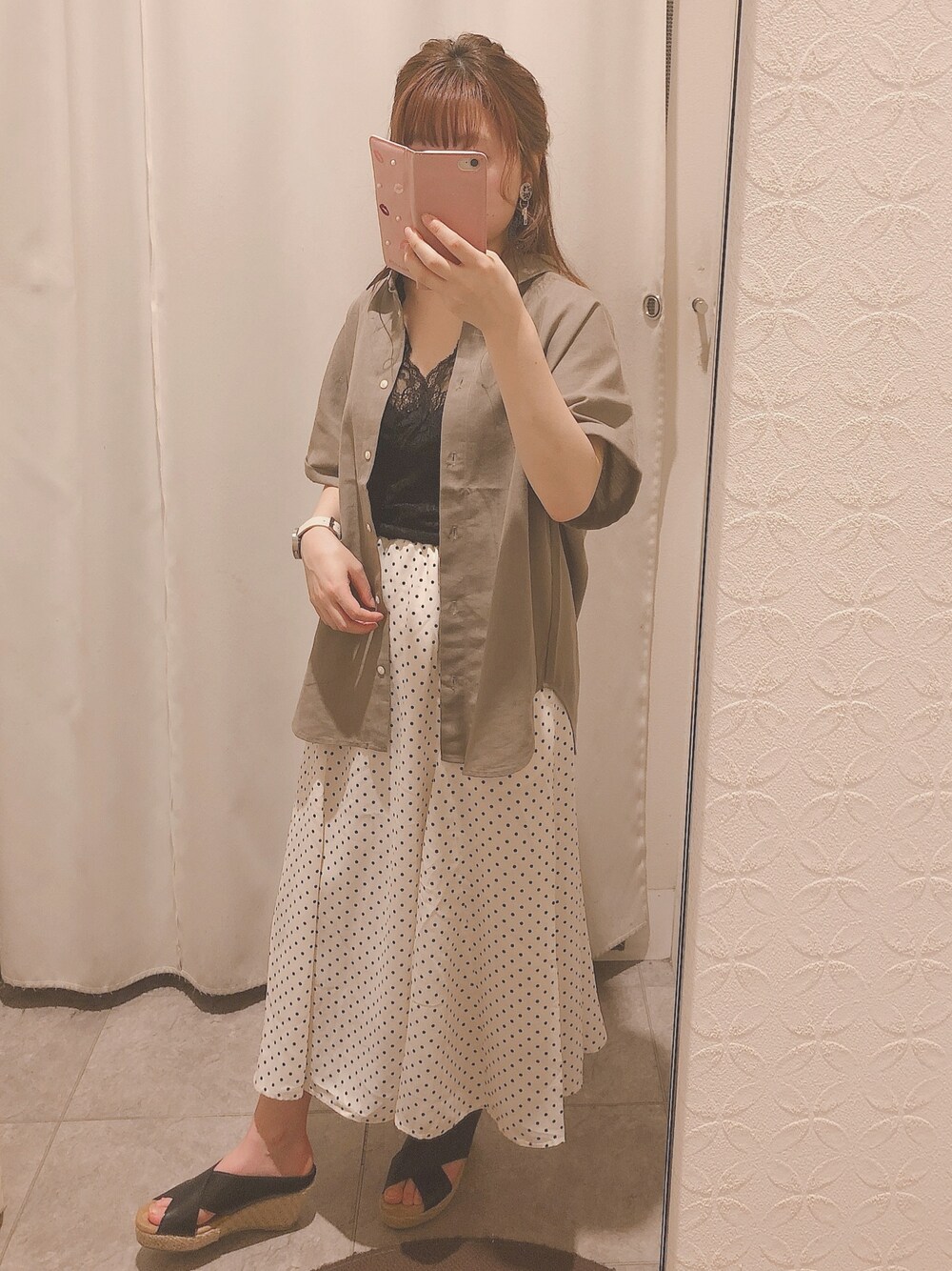 黒や紺のドットも定番で可愛いけど 白ドットは夏っぽくて爽やか✌︎ 総レースインナーで涼しさアップ⤴︎