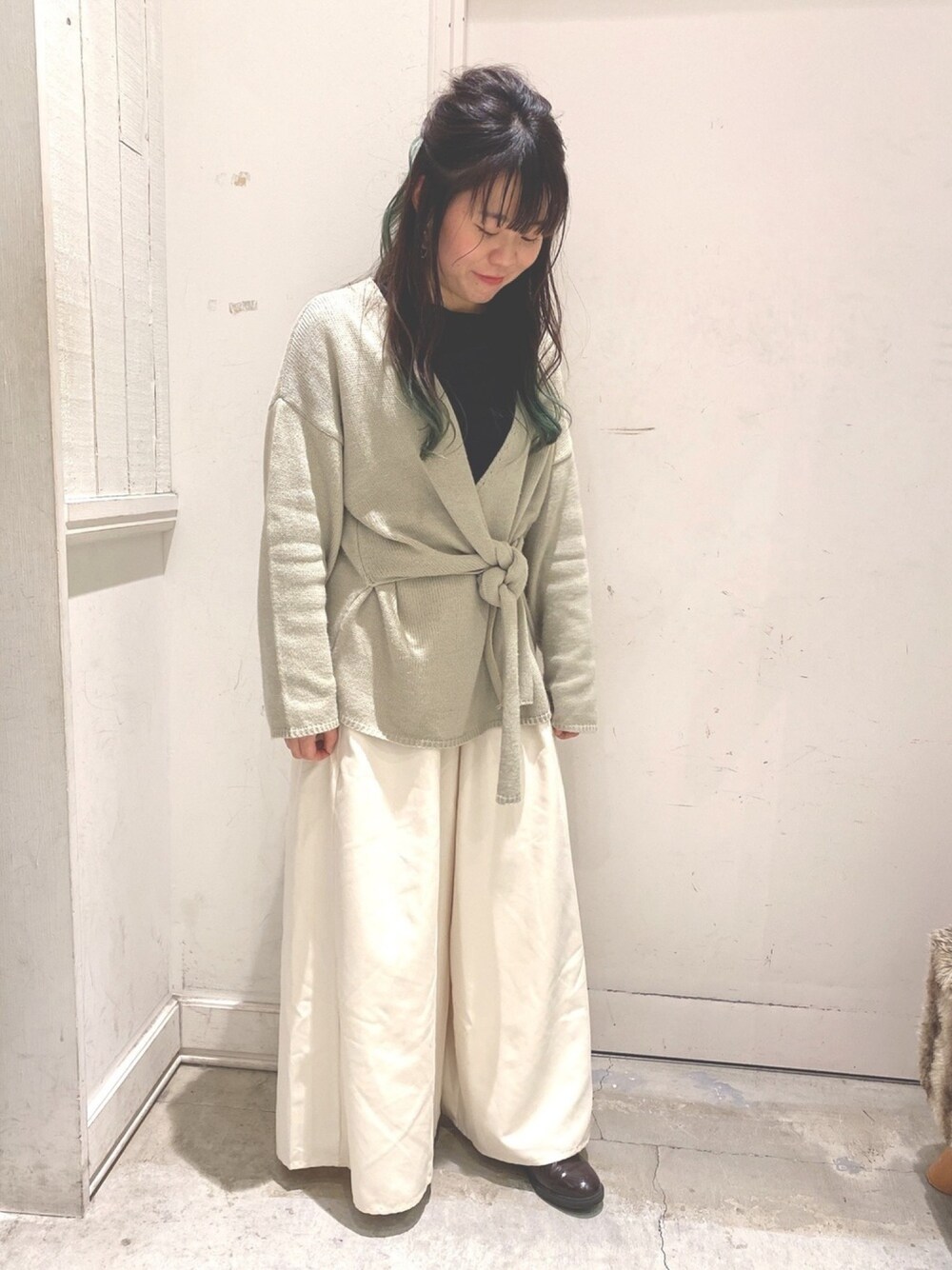 春のトレンドカラーミントコーデ🍀 トップスはおしゃれな前結びデザイン♩ ロンTやレースのインナーなど 中に合わせるもので雰囲気がグッと変わります! ワイドすぎるかな?と思うパンツも スカートっぽく見えてかわいいですよ◯