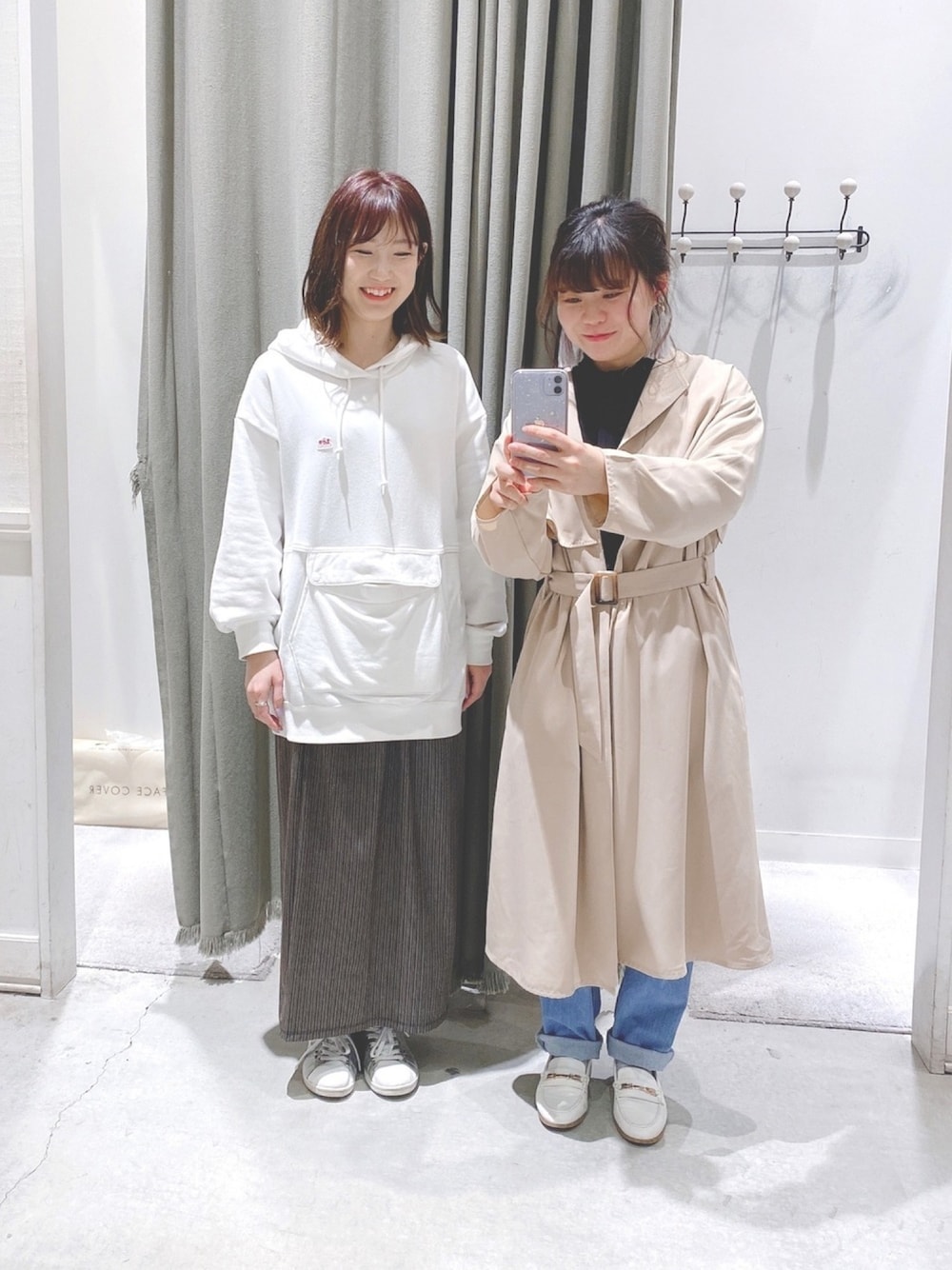 にこにこ店長と♡ 人気のLeeのパーカーと新作の配色リブスカート テロっとしたトレンチコートは いろんなシーンで使えます◯