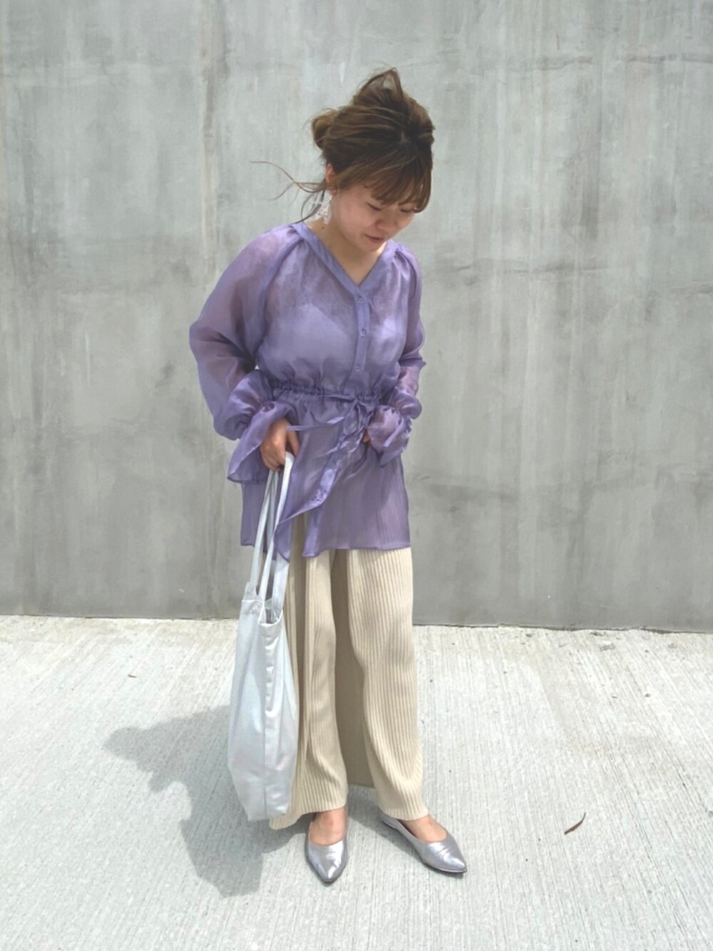 トレンドのシアーシャツ パープルの色味がかわいい💜