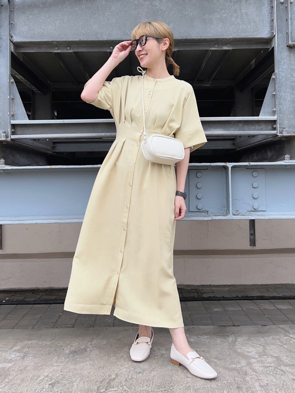 サイサイ賽賽のワンピース「リネンライクウエストタックシャツワンピース」を使ったコーディネート