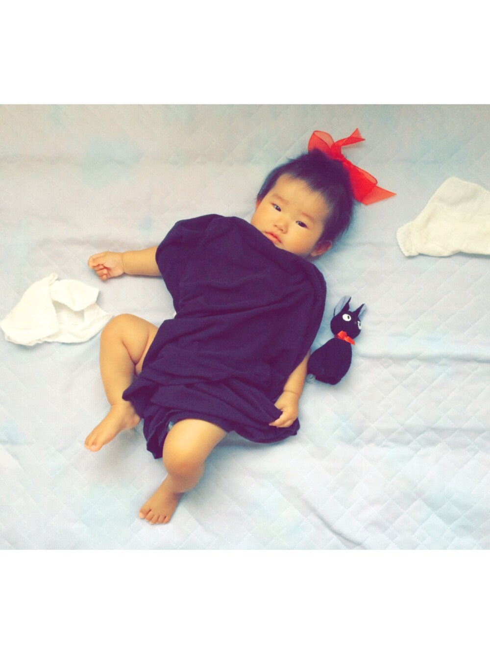寝相アート失敗。。 パパのTシャツお借りしましたー 魔女の宅急便だよー