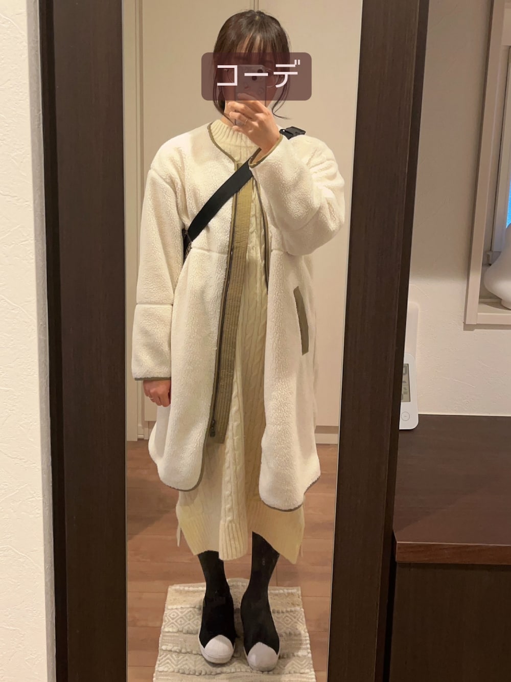 sair13のノーカラージャケット「FORK&SPOON ボアミドルコート」を使ったコーディネート