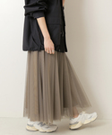 チュールスカートは若い時から好きで(^^) どうしても子供っぽくなりがちですが、こちらのスカートは、ふわっとなりすぎずストンとしたデザインに長い丈、落ち着いた色味で大人でも着やすい! 意外と何でも合わせやすく万能アイテム👏 素敵なデザインに出会えました🫰
