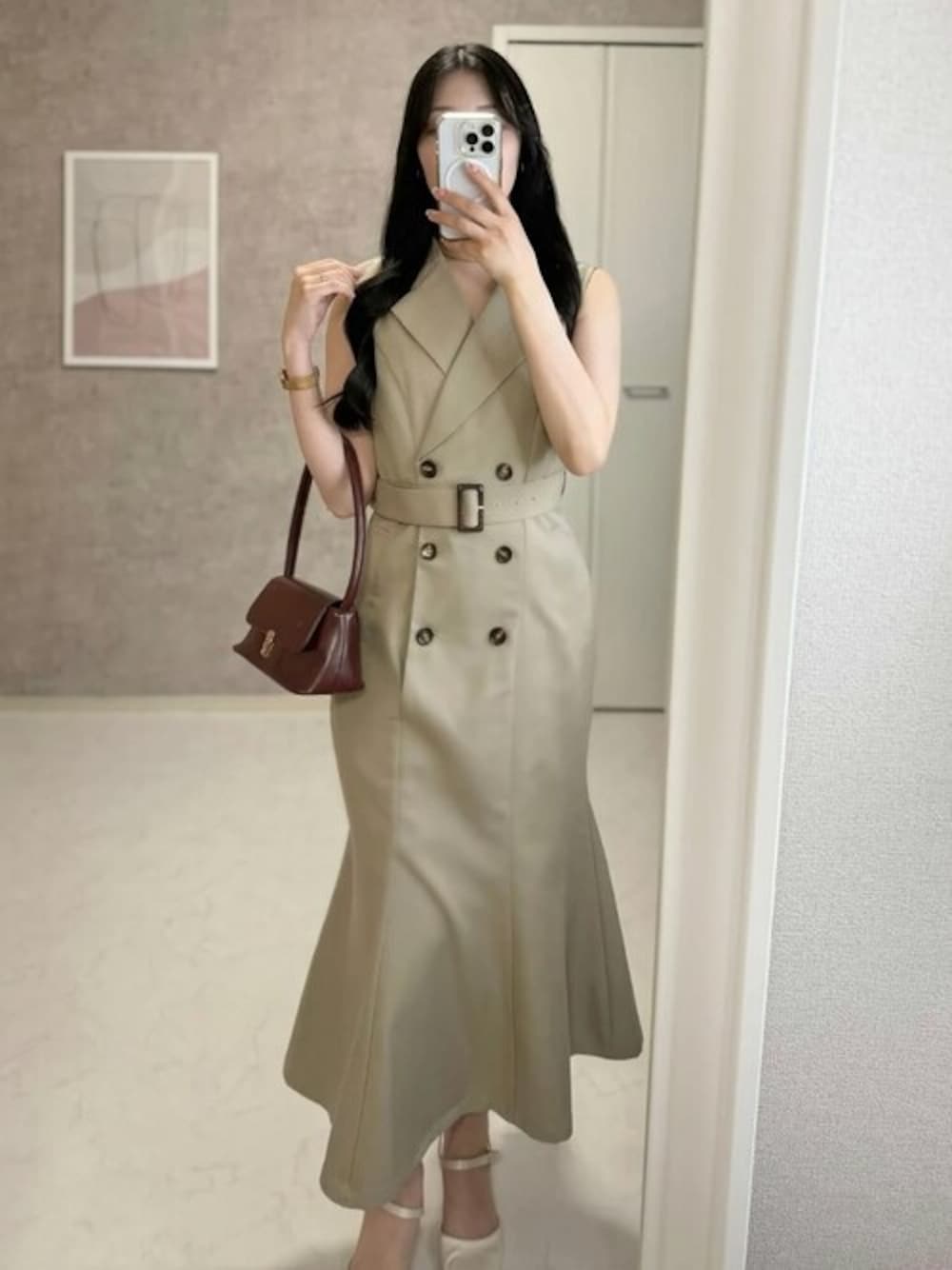 saisondepapillon_official(SAISON DE PAPILLON)のワンピース「【高評価&大人気】ノースリーブマーメイドトレンチ風ワンピース カジュアル 綺麗 通勤」を使ったコーディネート