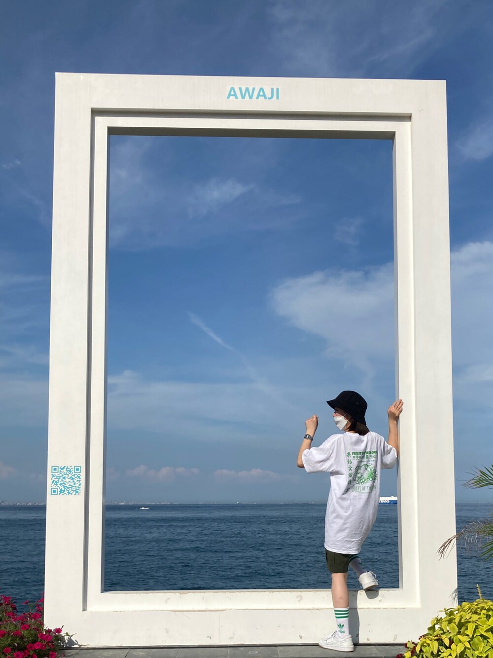 海最高🌊 夏といえば白Tシャツですよね🙆♀️ 背中の緑のロゴと緑のラインソックスを統一させてみました🤭
