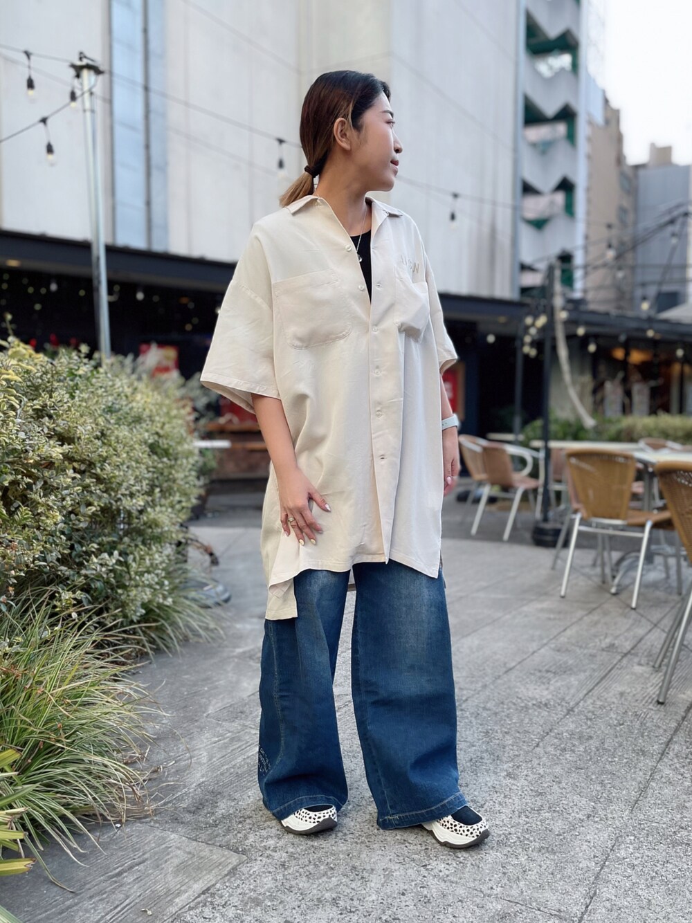 SAKIのデニムパンツ「【Women's】TYPE BLUE WIDE DENIM PANTS/ タイプブルー ワイドデニムパンツ」を使ったコーディネート