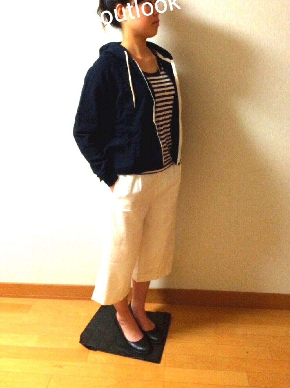 さっきのコーデのパーカーバージョン。 写真て難しいですね。このパーカーも後ろが長いのが使いやすい!!ちょっと髪がボサボサなのが、すいません∑(゚Д゚)