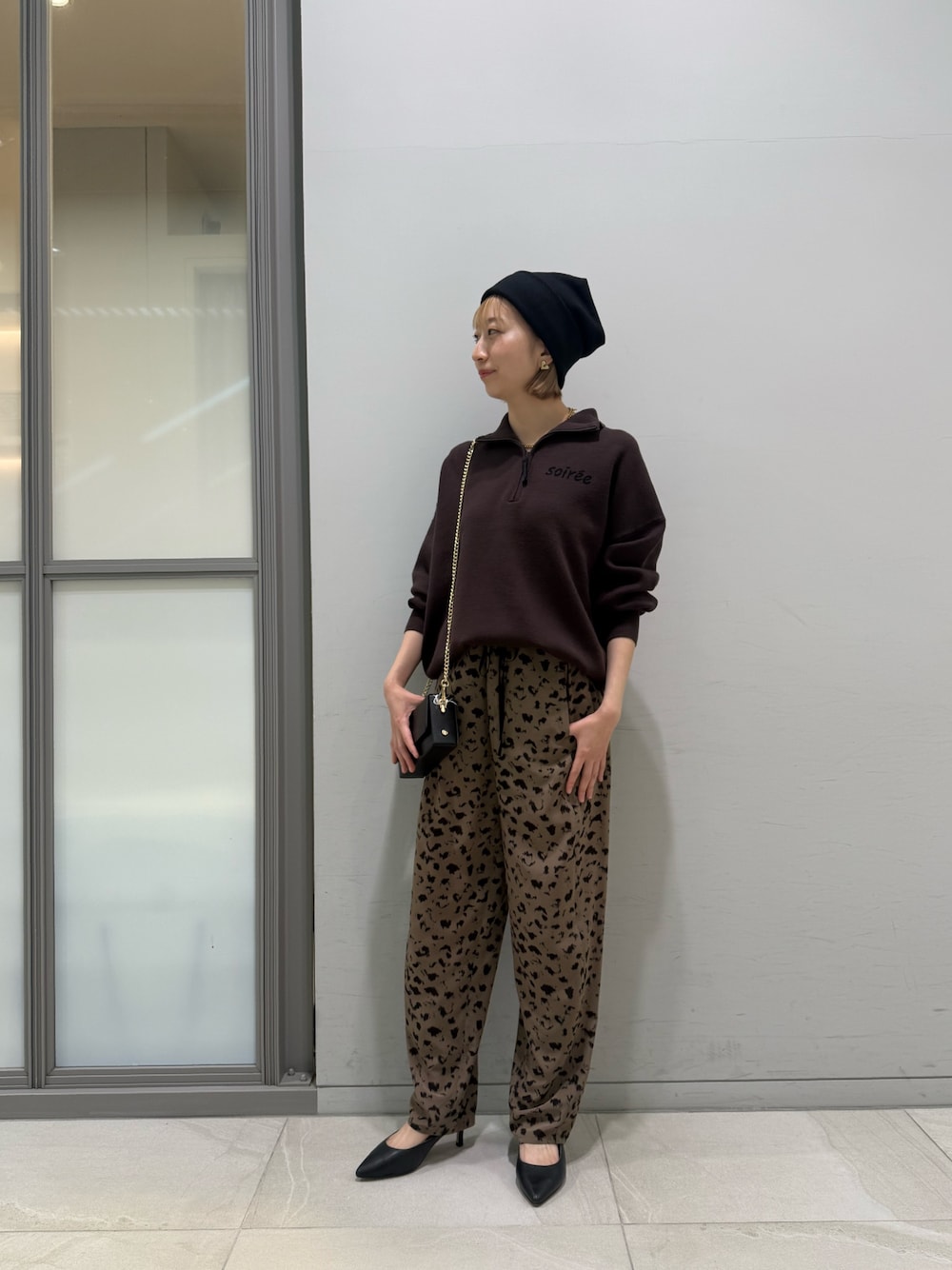 トレンドのニット帽×ハーフジップで 一見カジュアルと思いきや サラッとしたパンツスタイルとヒールで キレイめカジュアルの完成です✨ ブラウン×ベージュの同系色コーデもお気に入り☺️