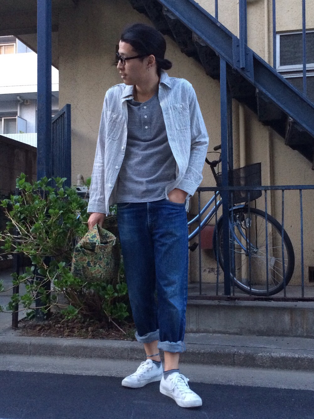 暖かいので、シャツとパンツロールアップで爽やかにコーディネートしてみました!