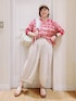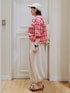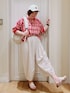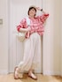 多機能リブドルマンブラウス▶️ 薄手ですが しっかりした生地感です! 丈短めで、襟ぐり、袖ぐりに リブが付いているので カジュアル感がでます🎵 袖を上げると 抜け感がでて オシャレ見えしますよ👏 後ろ前どちらでも 着られます✨ バルーンキュロット▶️ 薄手のさらりとした生地感で 少しハリ感がありますが 膨らみ過ぎず、 かわいいシルエットです🌼 ゆったりしたサイズ感で、 ウエストもかなり 楽な感じです🎵 膨らみが気になる方は、 長めなシャツなどを羽織るも 収まりがよくなりますよ☺️ 透け感気になる方へ ドットは、アイボリーよりは 透けにくいですよ✏️ ぜひ、お試しくださいm(__)m