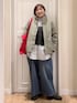 スタンドカラーミドルコート▶️ さらっとしたナイロンの肌触りで とっても軽いです😊 首元のスタンドカラーも 高すぎず、気になりません👍 お尻ギリギリ隠れる丈感で、 裾を絞ると、シルエットが、 かわいいです🥰 そんなに厚手ではないですが、 中綿が保温性がある素材なので、 暖かいですよ🧡 7ゲージ切り替えフレアベスト▶️ 柔らかいニット生地です🧶 伸びも良く、着心地も良いです🙆 短めで、お腹は隠れないのですが、 フレアの部分が浮くので お腹が目立ちません✨ かつ、同生地なので可愛過ぎず Tシャツやブラウスなどとも 着回しもしやすいですよ👏 ストライプシャツ▶️ さらっとした触り心地で、 薄過ぎず、羽織りやすい生地感です😊 シワになりにくいのは ありがたい💖 レギュラーとビッグでサイズ感が 分かれております!! ビッグサイズを着用しております!! かなりゆったりで、 お尻がしっかり隠れる丈感です👍 大きいサイズでも、 着膨れして見えなくていいですよ🥰 タックストレートデニムパンツ▶️ さらっとした表面感で、 適度なしっかりさがあるデニムです👏 ある程度の重みもあり、 落ち感がかっこいいデニムです😎 フロント部分が 平らでスッキリ見えます💖 そこから後ろにかけて ゴムが入っています!! すごく伸びのいいゴムではなく、 適度な感じに伸び、 少しゆとりのあるサイズ感です🤔 タックが入っていて 楽ちんですよ👍 Lサイズを着用しております!! ウエストはゆとりあり、 丈感もくるぶし隠れるくらいの丈感です ぜひ、お試しくださいませ🙇