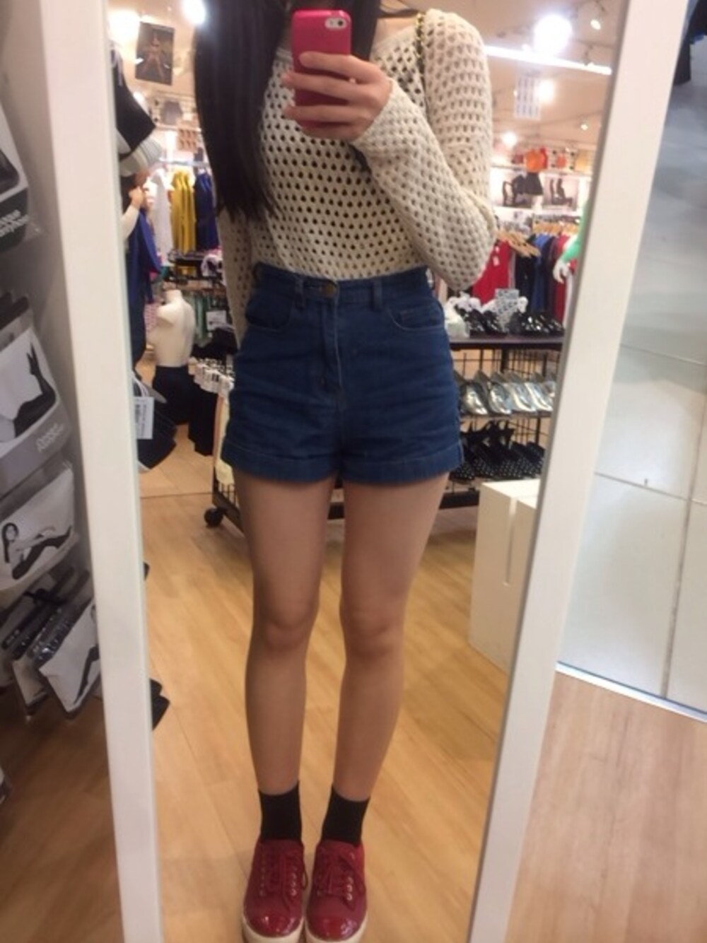 Saki maetaのデニムパンツ「WEGO/ハイウエストロールアップショーツ」を使ったコーディネート