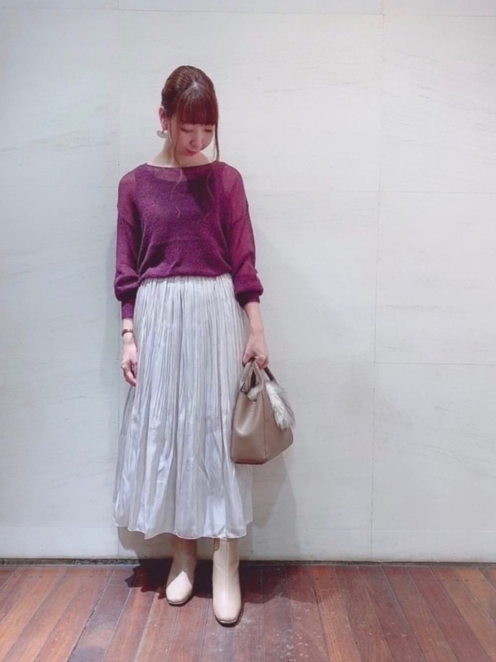 sakiのニット/セーター「インナー付透かし編みニット」を使ったコーディネート