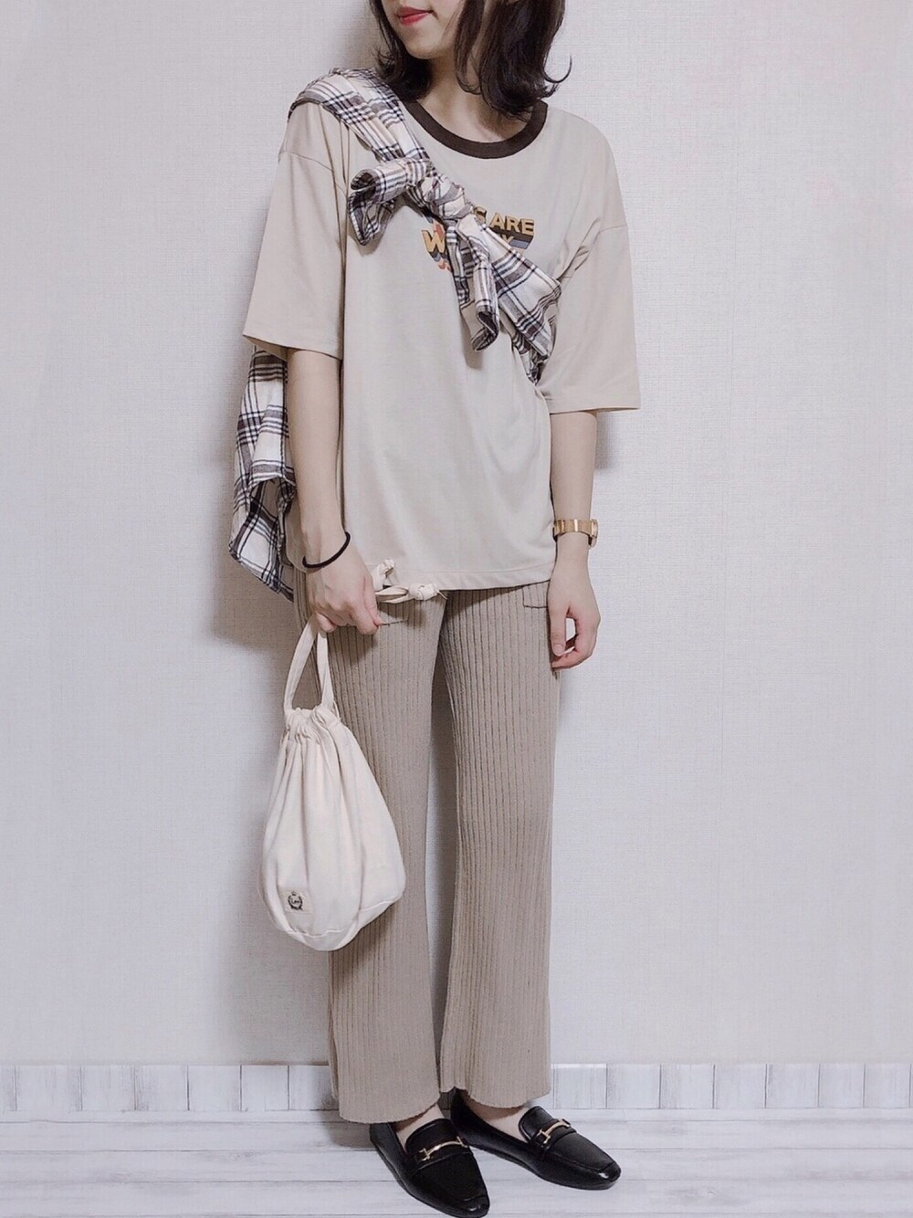 いいね、お気に入り、フォロー ありがとうございます🥺 ベージュコーデです! 秋っぽくチェックシャツ取り入れてみました☺️ このtシャツ可愛くないですか! niko andで一目惚れして買っちゃいました🥺 Instagramもやってます🌷 @__sakichooooo
