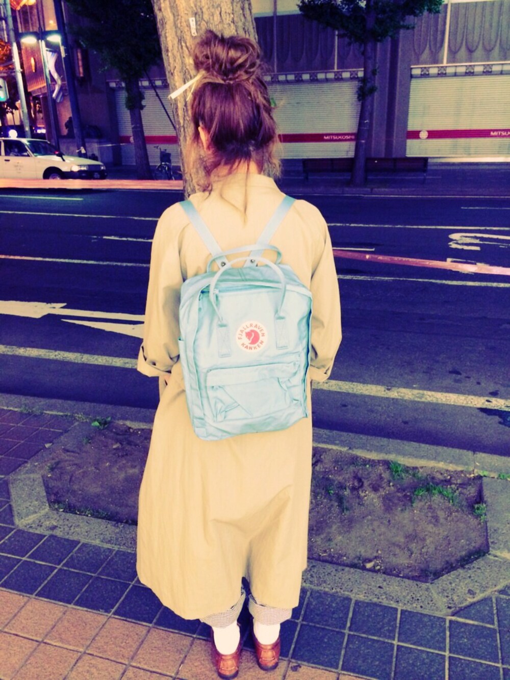風が強ーい。 肩のところがかわいいとっぷす#古着屋 カンケンBAGの色、おきにりだー!