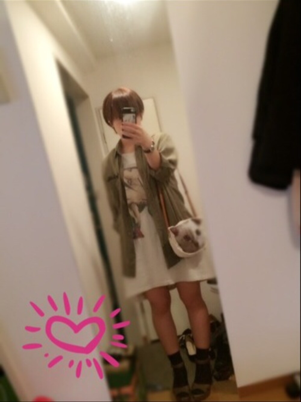 regaのTシャツワンピ。ネコポシェット。