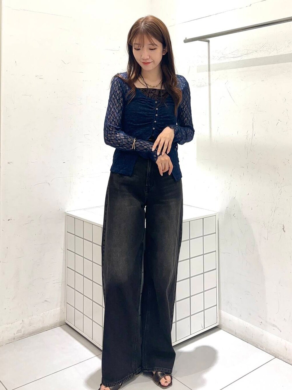 sakiのサンダル「カットアウトメタリックミュール」を使ったコーディネート
