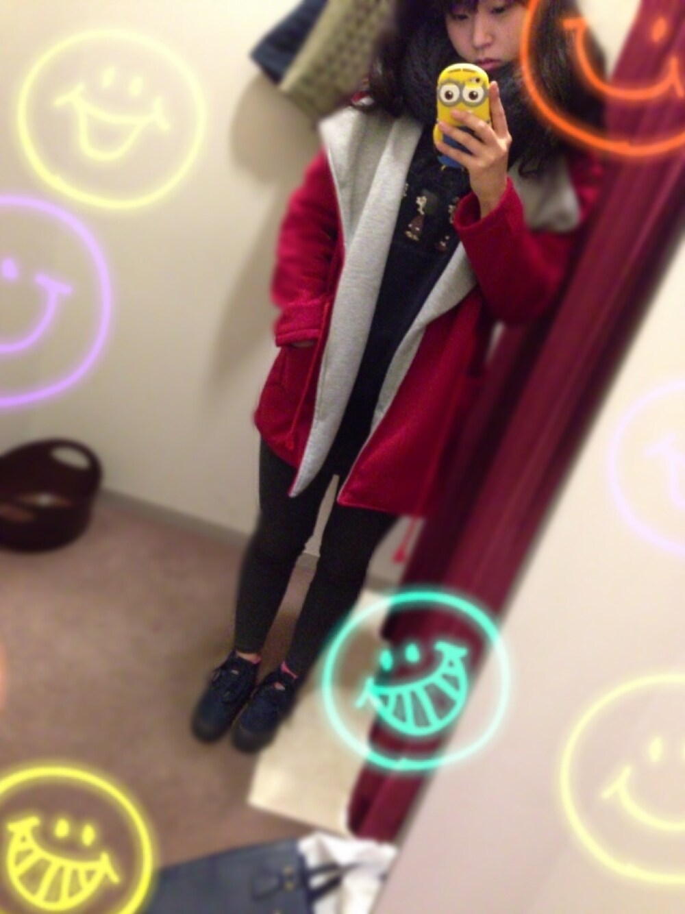 寒い!! コート//韓国ネットで購入 トレーナー//韓国で購入 スカートレギンス//韓国で購入 スニーカー//韓国で購入
