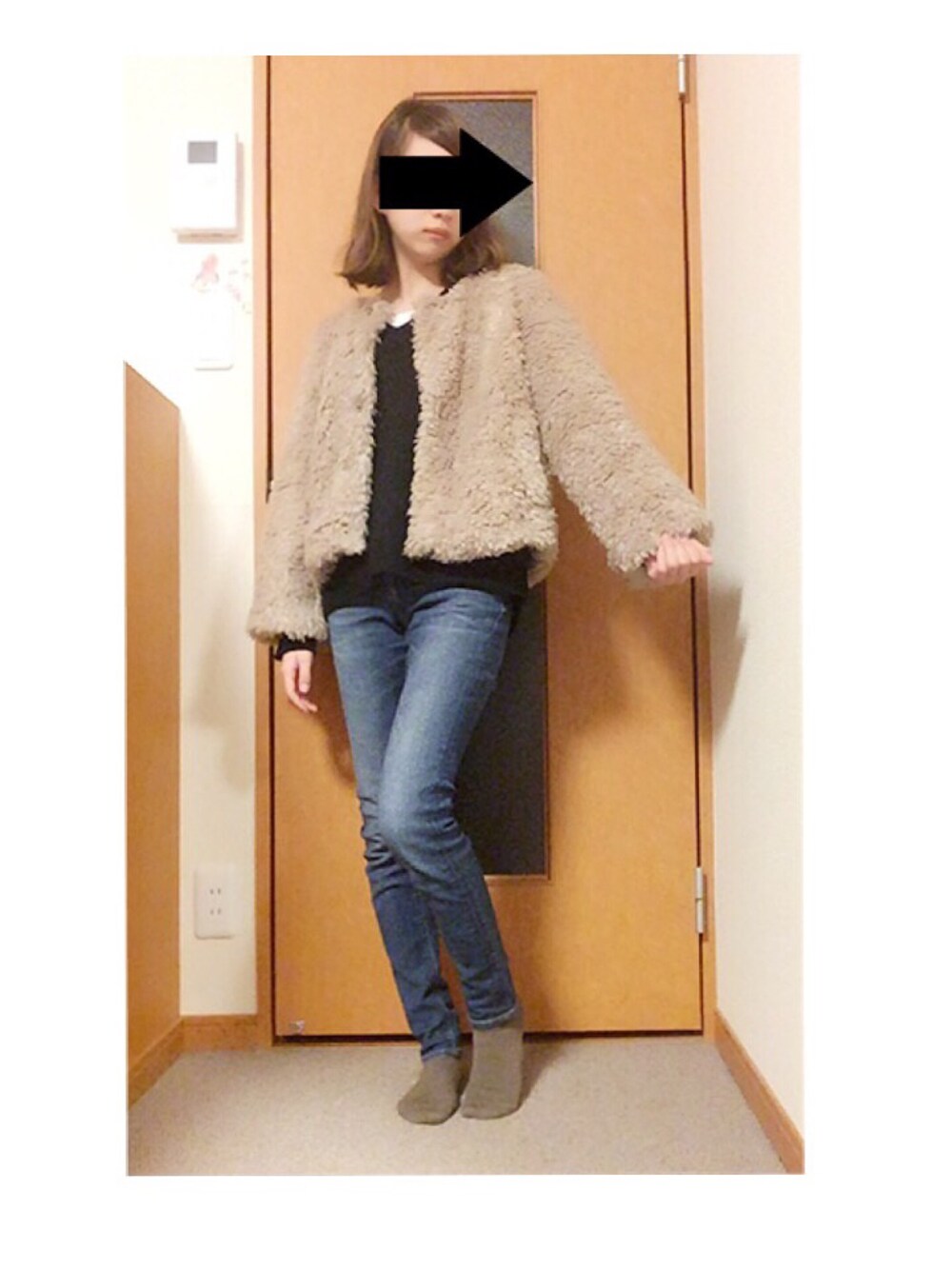 ファーコートを使ったコーデ スキニーと合わせて大人っぽくしました。