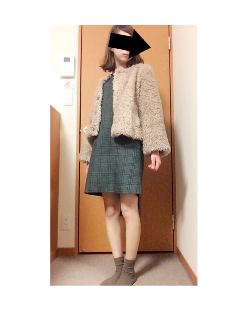 ファーコートを使ったコーデ コクーンワンピと合わせて 大人ガーリーにしました。