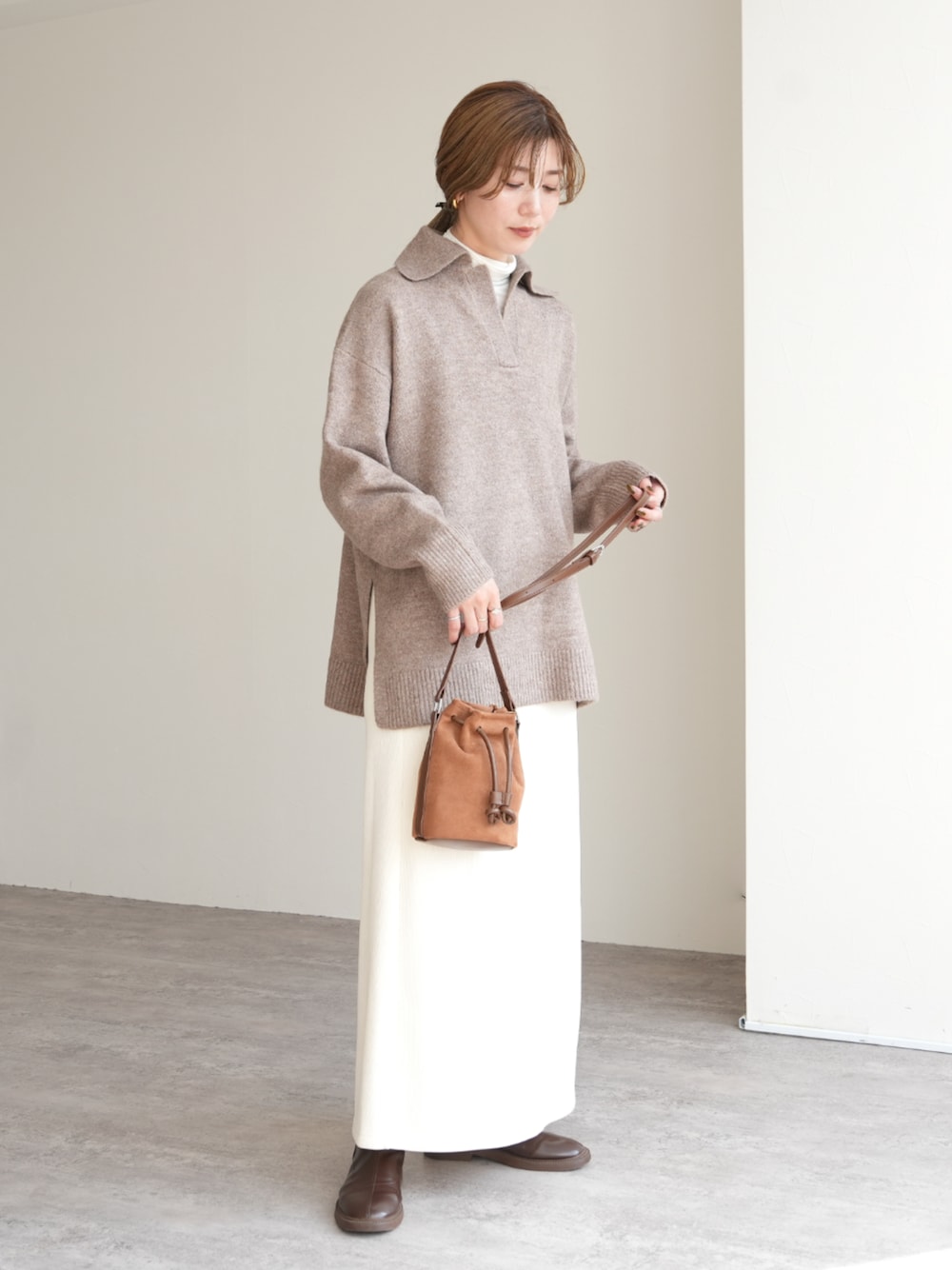 ご覧いただきありがとうございます😊 \2025_WINTER_NEW_ITEM/ reca ▶襟付きスキッパーニット ▶コーデュロイ裏フリースナロースカート instagram @reca.zozotown
