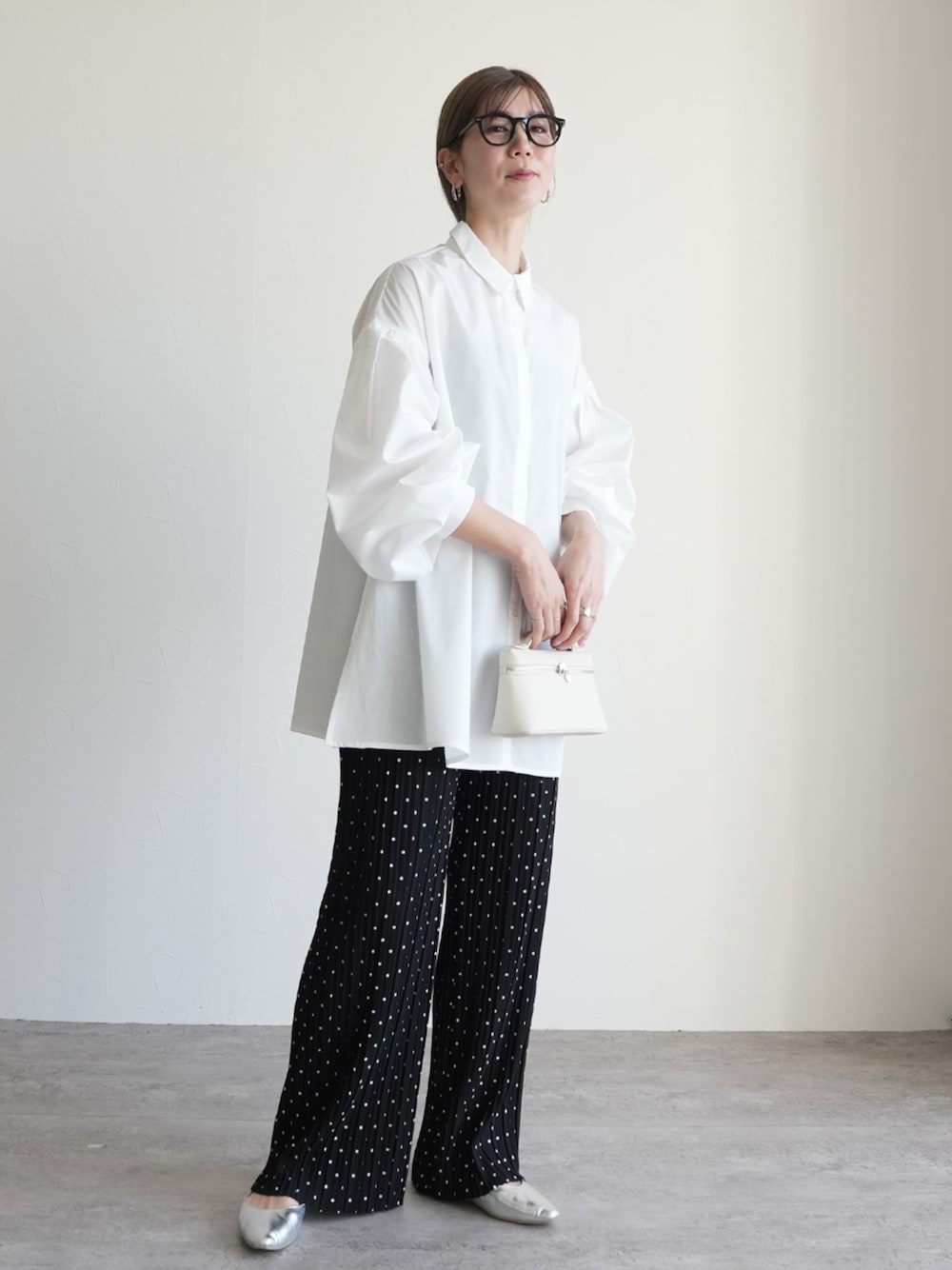 reca ▶シャーリング袖ボリュームブロードシャツ ▶迷わず着れる!大人のセミワイドプリーツパンツ instagram📷 @reca.zozotown