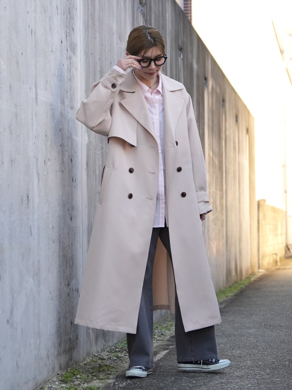 ご覧いただきありがとうございます😊 reca ▶ツイルトレンチコート ▶アソートオーバーサイズベーシックシャツ ▶飾り釦付き裏ゴムストレートデニムパンツ instagram @reca.zozotown
