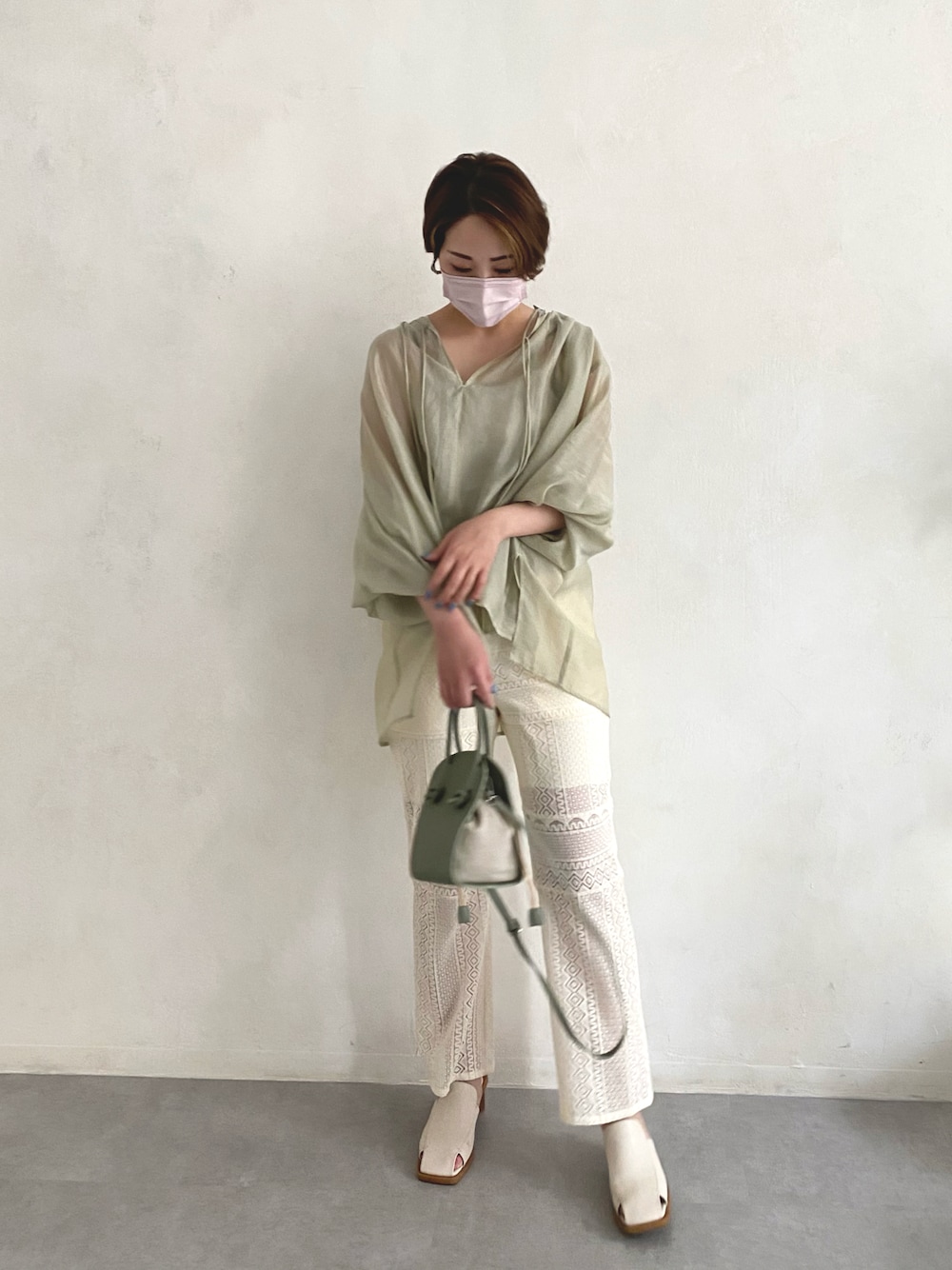 GREEN×WHITE🕊 夏まで着れるシアーシャツと レースパンツのクリーンな スタイル!