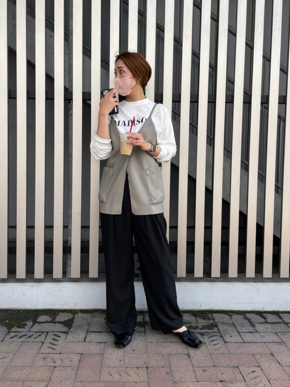 sako_lemageのベスト「レザーキャミベスト」を使ったコーディネート