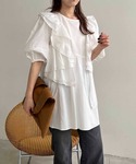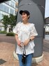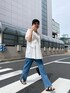 . フリルシャツを デニム×CAPでスポーティーに☆