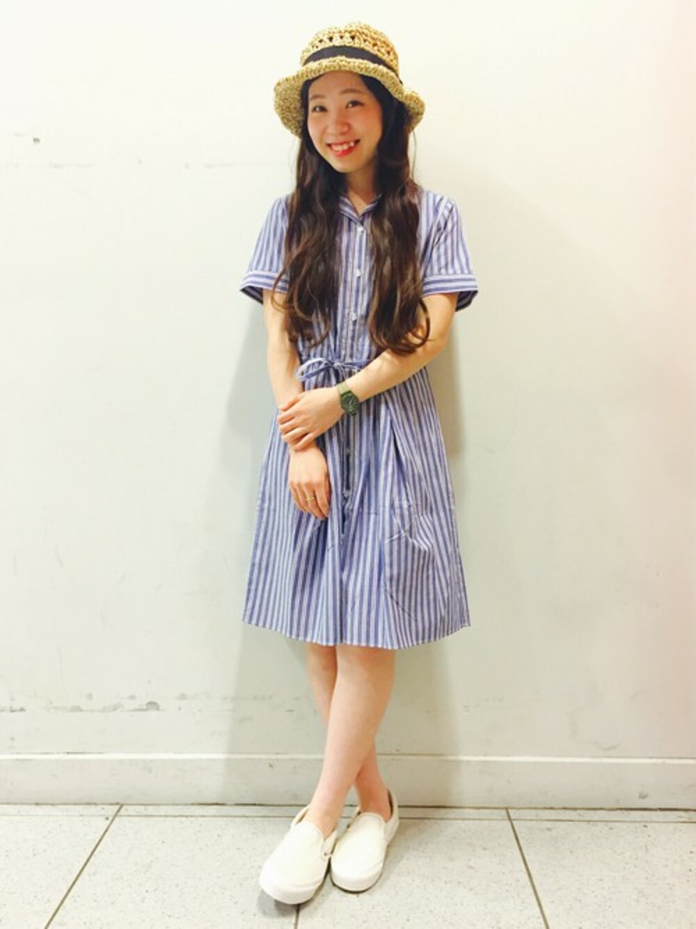 Ciaopanic スタッフのワンピース「【Ciaopanic】 C/ストライプ半袖シャツOP」を使ったコーディネート