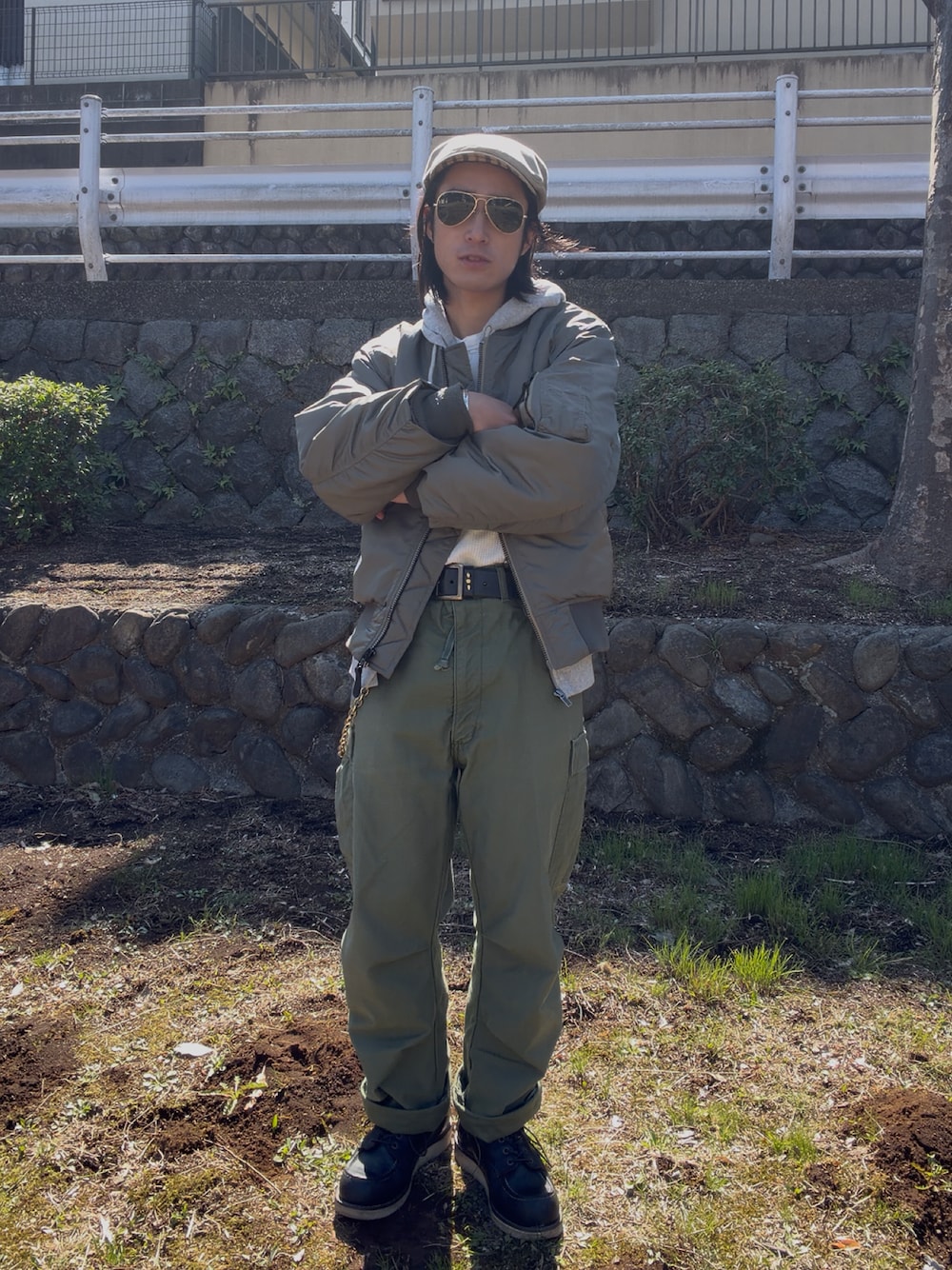 サングラス、アウター、サーマル、ズボンに至るまでミリタリー要素を詰め込んだゴリゴリのミリタリーコーデ🪖 久々にオシャレできて欲求不満解消のため野暮になるほどミリタリー要素詰め込んだ