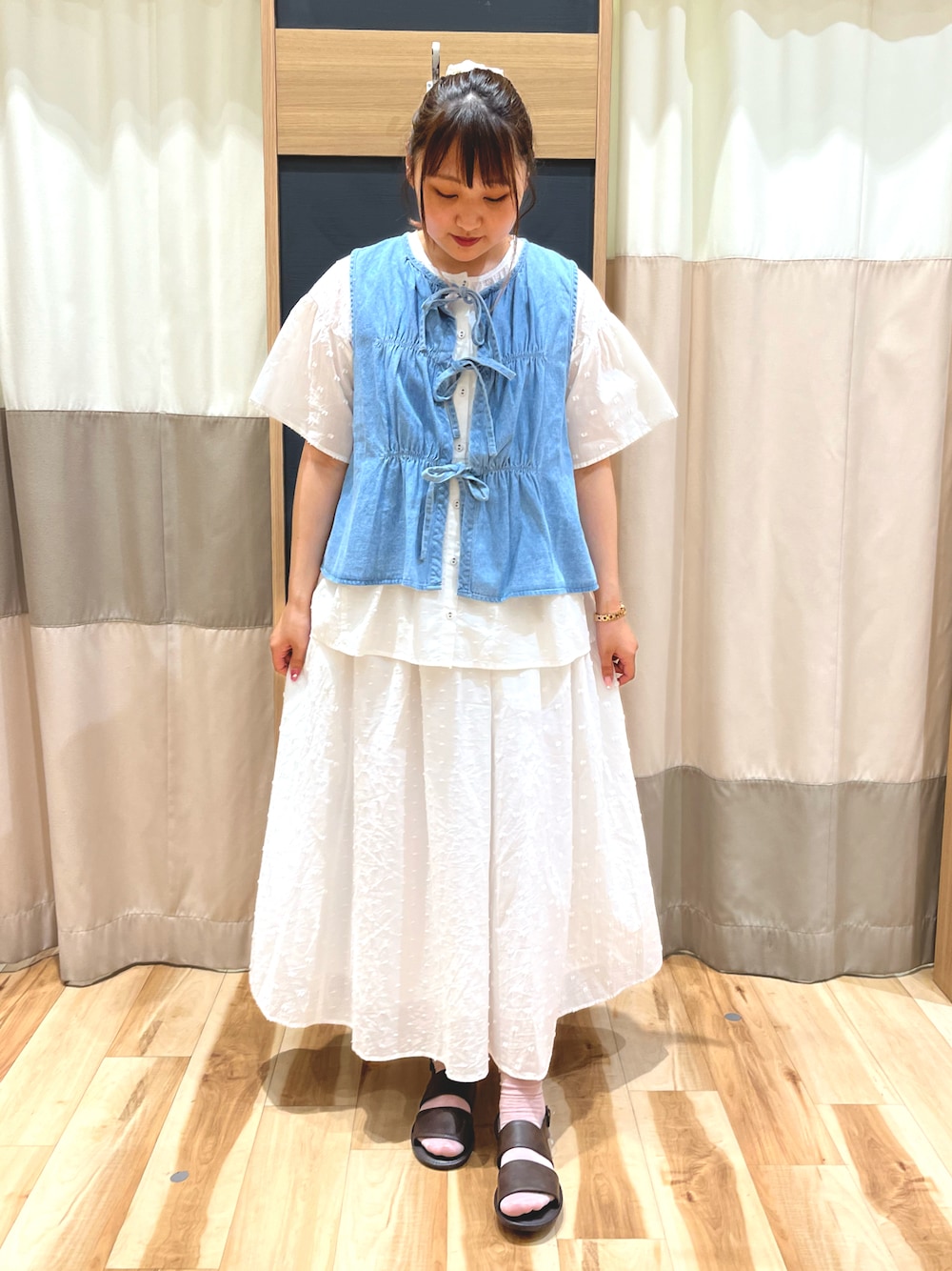 桜子のベスト「デニム/綿麻キャンバスリボンベスト」を使ったコーディネート