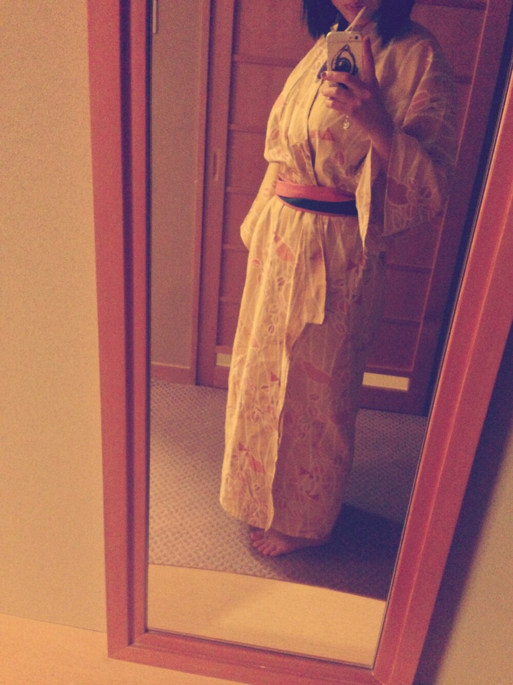 温泉の浴衣がかわいくて記念に。 小鳥の柄が可愛すぎました(;_;)💓