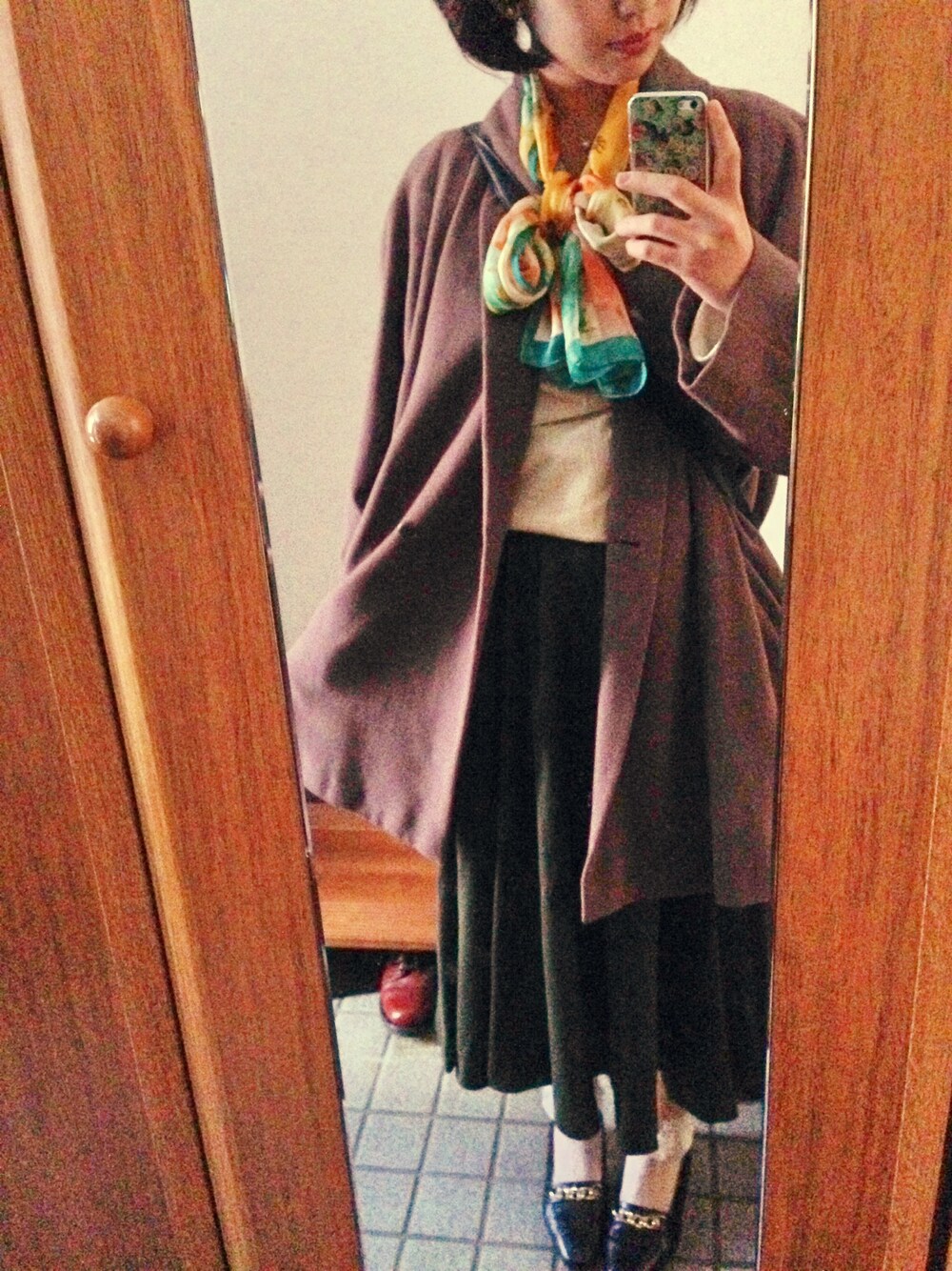 靴もスカーフもスカートもチェスターコートもおばぁちゃんのおさがりです〜