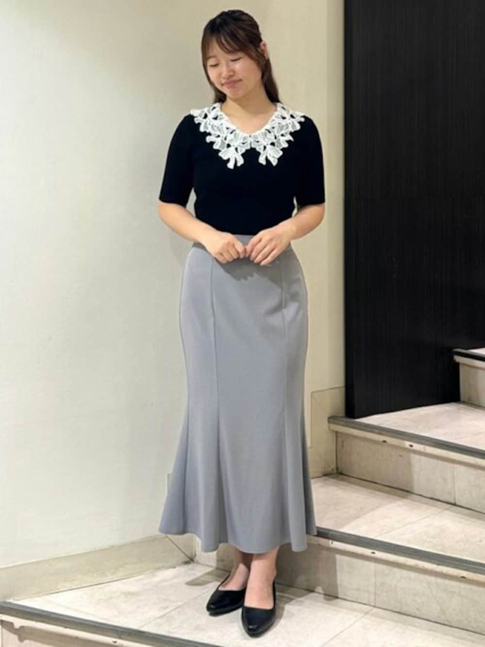 華やかなリボンレースを主役にマーメイドシルエットで上品フェミニンに♪ オフィスやお出かけにも対応できる万能コーデです♡ ★着用サイズ トップス:M ボトム:L