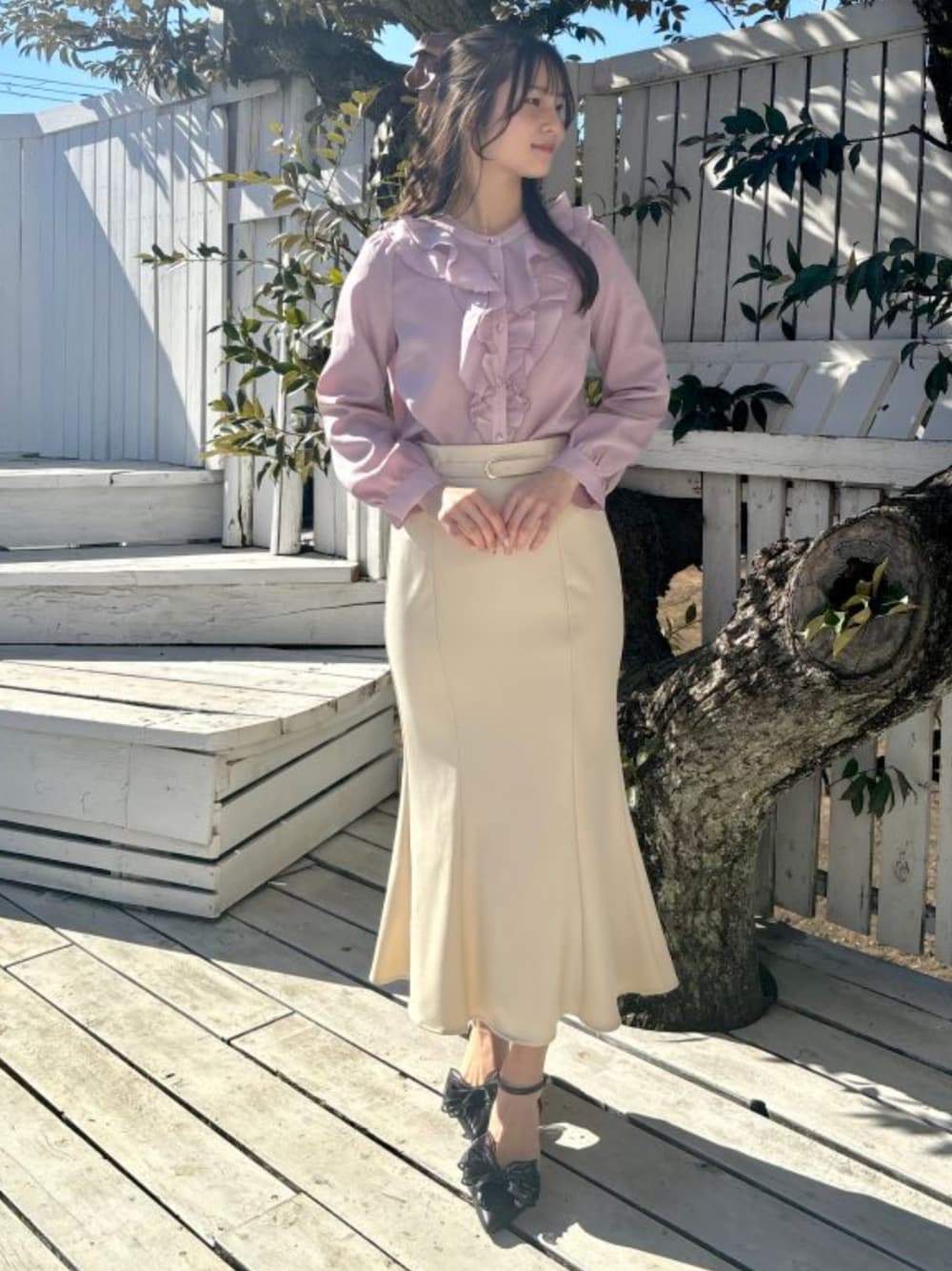 【トップス】 素材:光沢感とシアー感のある高見え素材! サイズ:Mサイズ着用でぴったりです。 【ボトムス】 素材:通年着やすい生地感で、オフィスにもおすすめ サイズ:Mサイズ着用でぴったりです。他のスカートよりも腰回りはややタイトになっています。 【POINT】 ピンク×アイボリーで王道の春カラーコーデです♪ 着映えするのでアフタヌーンコーデにもおすすめ♡