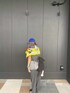 グレースラックスにグレーチュールを重ねて、青キャップで締めたコーデ🛜