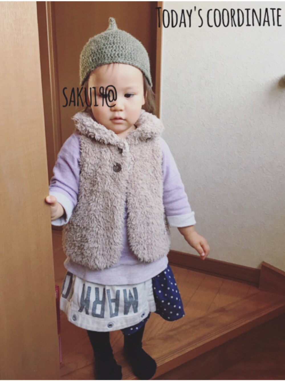 saku19@のベストを使ったコーディネート